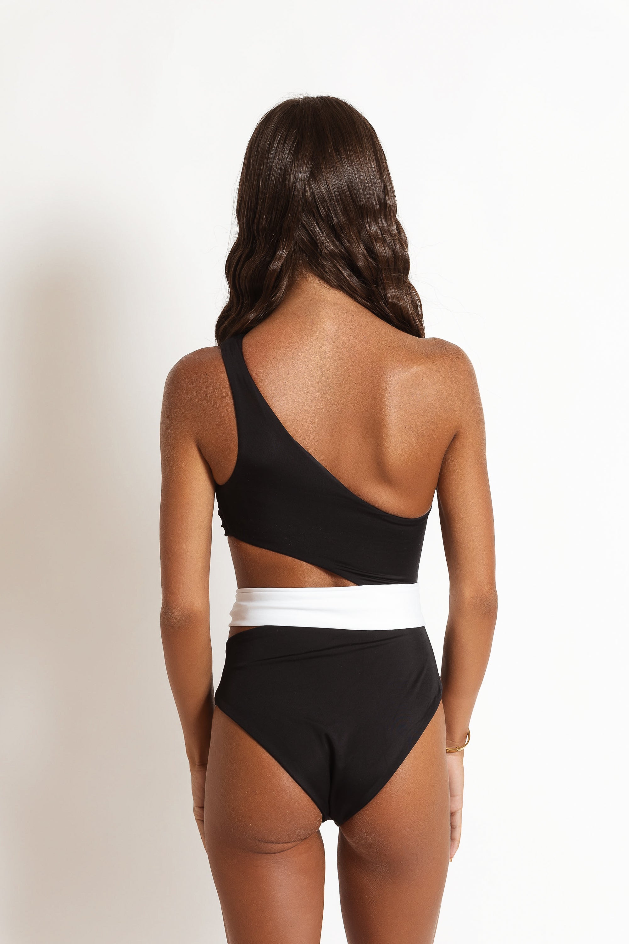 Step into effortless sculpting elegance with our black and white one-piece, designed to take you from a relaxing day on the beach to a chic night out with ease.